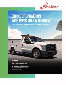 Whether it’s parked on a job site, posted between calls, providing power to portable equipment or simply keeping workers comfortable on break, work trucks spend a lot of time idling – up to half of their operational life in some cases, while typically burning a gallon of fuel every single hour. That fuel expense adds up fast, while increased engine wear from constant idling can shorten the service life of the vehicle. Xantrex work truck solutions, including our IMPAC eGen lithium-ion battery systems and ZeroRPM technology, slash both fuel bills and service costs while providing safe, reliable, and emission-free power on the job site.